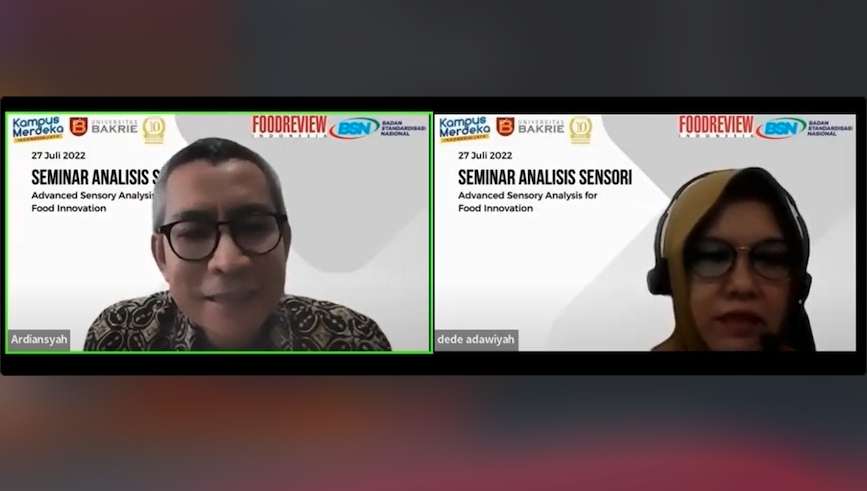 “Pekerjaan pengembangan produk ini adalah pekerjaan yang terus menerus, karena tidak berhenti hanya karena sudah mengembangkan satu produk saja, tetapi juga harus terus dipantau bagaimana produk baru tersebut diterima di pasaran dan juga dilakukan evaluasi yang terus-menerus,” kata Guru Besar IPB Prof. Dr. Dede R. Adawiyah dalam Seminar Analisis Sensori - Advanced Sensory Analysis for Food Innovation yang diselenggarakan oleh Universitas Bakrie secara daring, 27 Juli 2022. Acara digelar dalam rangka perayaan 10 tahun Teknologi Pangan Universitas Bakrie. Fri-35