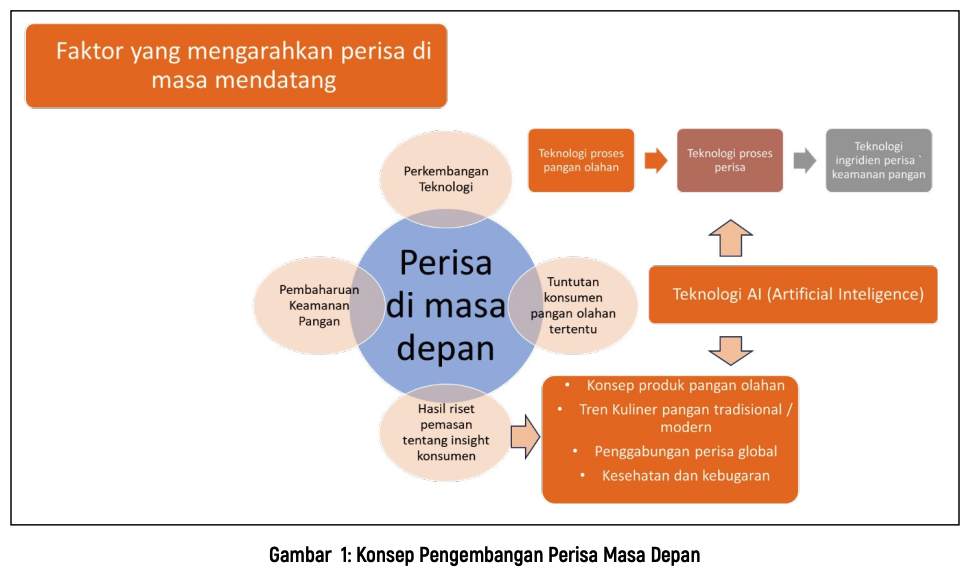 Kesimpulan garis besar untuk kreasi perisa pada saat ini maupun masa mendatang adalah memperhatikan perkembangan teknologi terhadap proses pangan olahan, teknologi pembuatan perisa yang sudah menggunakan, teknik fermentasi, reaksi perisa, enkapsulasi dan sebagainya, demikian pula dengan teknologi yang berkembang pada ingridien bahan tambahan pangan (Gambar 1). Mempelajari insight konsumen dari berbagai pasar pangan olahan juga sangat penting agar perisa yang diciptakan dapat memenuhi selera konsumen; di era globalisasi ini sudah banyak rasa khas kuliner dari negara seperti Korea, Thailand dan Jepang yang mewarnai rasa dari pangan olahan seperti produk mi instan, makanan ringan, minuman siap konsumsi (RTD) dan lain lain. Inovasi teknik seperti enkapsulasi perisa dan pemetaan perisa dapat membantu menciptakan perisa yang kompleks bagi para konsumen dari berbagai macam selera menurut asal negaranya.