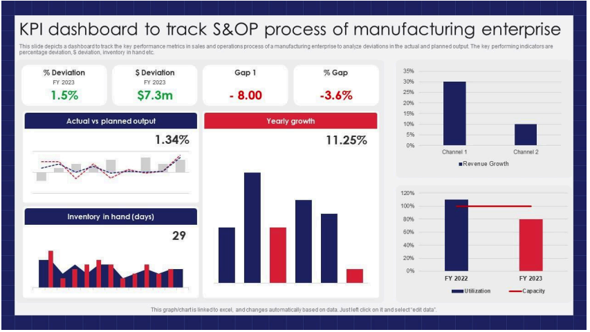 Key Performance Indicators (KPI) memainkan peran krusial dalam mengukur kinerja dan keberhasilan implementasi rencana operasional. Berikut addalah beberapa KPI yang penting untuk dibahas dalam proses S&OP.