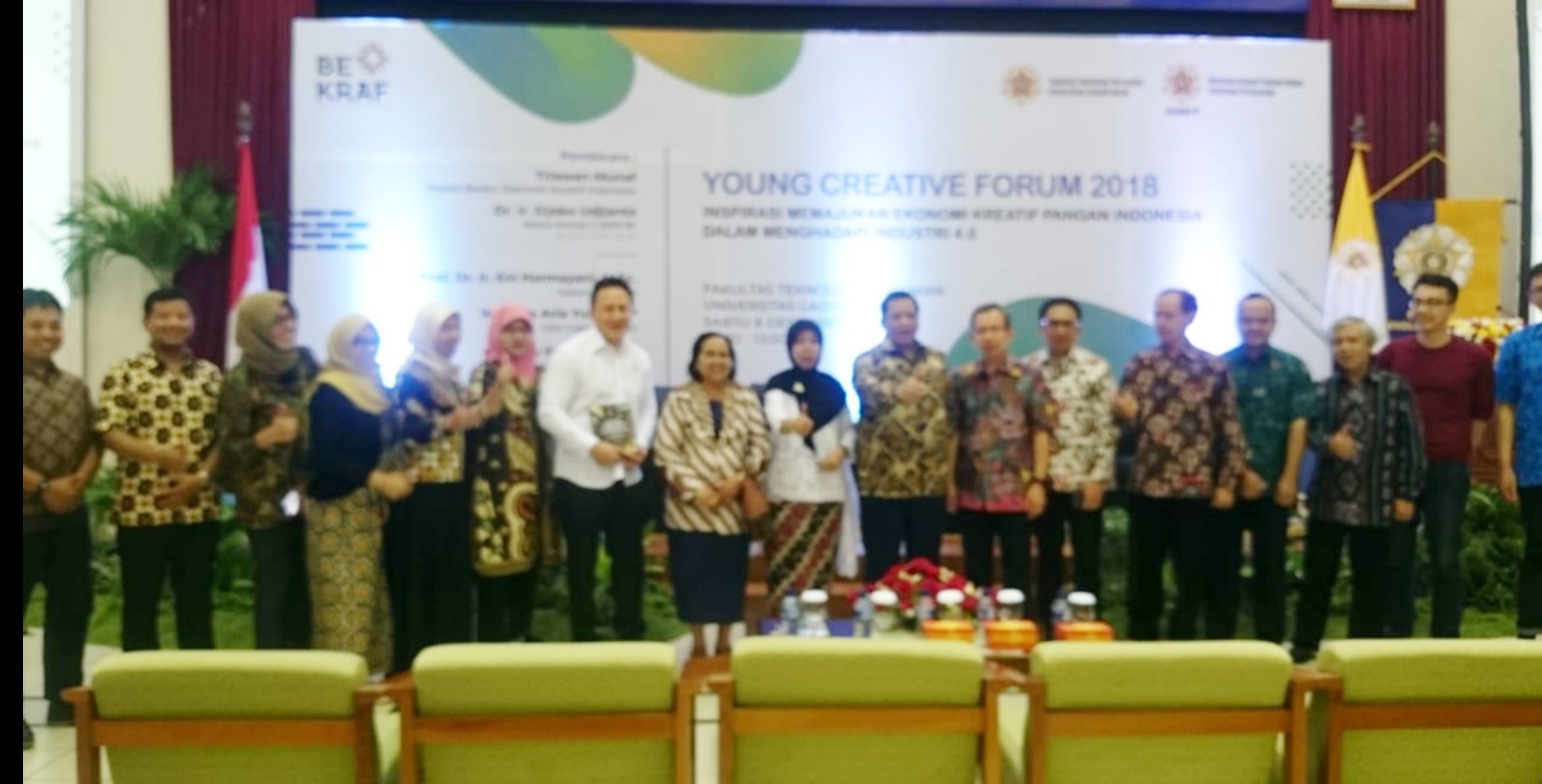 Badan Ekonomi Kreatif (BEKRAF) Republik Indonesia bekerjasama dengan Fakultas Teknologi Pertanian UGM menggelar Young Creative Forum 2018 dengan tema Inspirasi Memajukan Ekonomi Kreatif Pangan Indonesia dalam Menghadapi Industri 4.0. Acara ini diselenggarakan di Auditorium Kamarijani-Soenjoto Fakultas Teknologi Pertanian UGM Yogyakarta, 8 Des lalu.